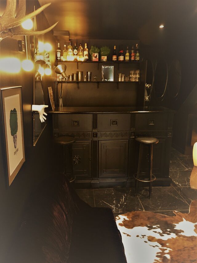 Au RDC, un espace bar où vous pourrez déguster nos cocktails favoris accompagnés des traditionnels mezzes.